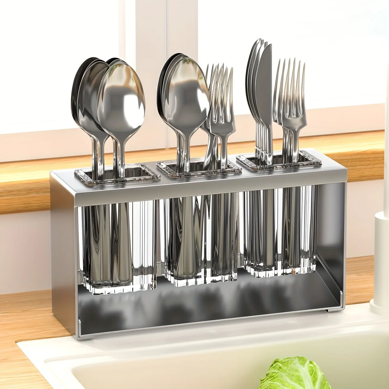 1pc Stainless Steel Multifunctional Kitchen Utensil Holder with Drainage and Transparent – Chopsticks, Knives, Forks & Spoons